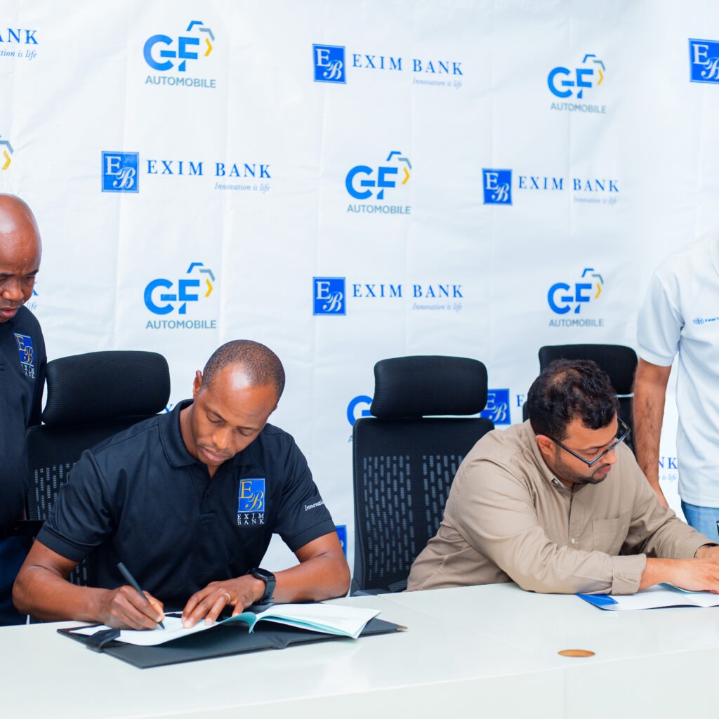 Exim Bank Tanzania na GF Trucks & Automobile Limited wamesaini rasmi Mkataba wa Makubaliano (MoU), hatua inayoashiria ushirikiano uliobuniwa kurahisisha safari ya umiliki wa magari nchini Tanzania kwa kuwapatia wateja suluhisho la kifedha rahisi, nafuu na linalojikita katika mahitaji ya mteja.Hii ni njia ya kuthibitisha kwamba Exim inatoa zaidi ya huduma za kifedha kwa kuleta suluhisho linalorahisisha maisha ya kila siku.